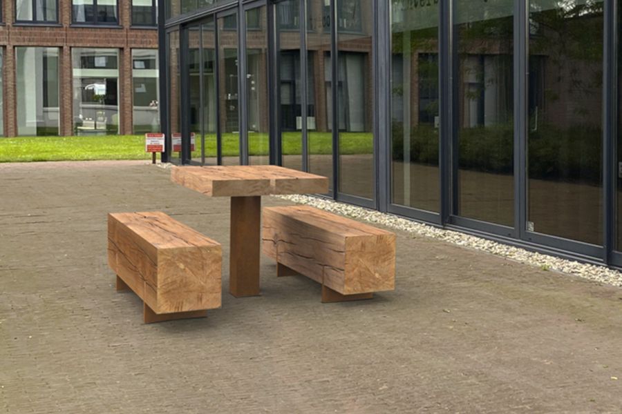 Pure picnic sæt III er et bord bænkesæt med et naturligt look. Bord bænkesættet består af to beskedne bænke med et bord. En unik egenskab ved Pure-seriens bord bænkesæt er, at bord bænkesættet passer ind i både urbane og naturlige miljøer. Dette bord bænkesæt er en kort version af Pure picnic sæt II. Med en længde på halvanden meter er bord bænkesættet nemmere at placere i et udendørs rum end sin storebror. Kombinationen af træ og cortenstål understreger dette bord bænkesættets naturlige karakter. Da dette bord bænkesæt består af separate elementer, er det muligt at tilføje et ryglæn til en eller begge bænke. Dette gør det endnu mere behageligt at sidde ved bordet. Bord bænkesættet er nemt at kombinere med andre produkter fra Pure Eco-serien.