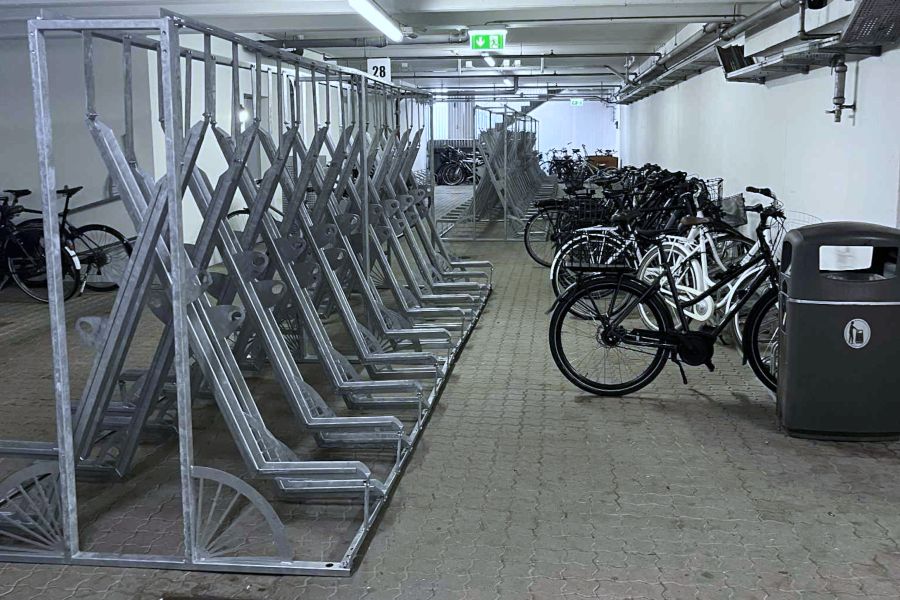Opnå pladsbesparelse med vores Semi Vertikal Cykelparkering, en meget populær og brugervenlig cykelopbevaringsløsning.
